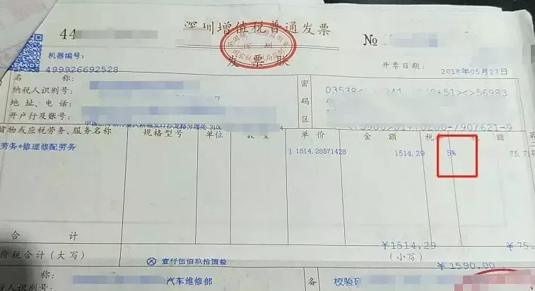 👆👆上面两张发票,一张是汽车修理修配业务,一张是餐饮服务,都开的5%的发票。