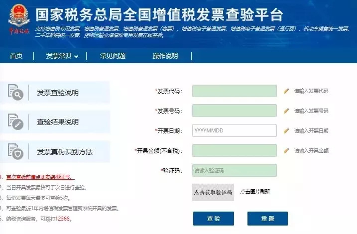 输入发票代码和号码即可查询。