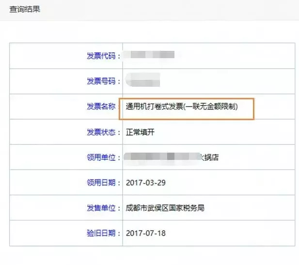 注:以下查验结果并不是对于发票图片的结果,发票图片只是为了展示发票样式而已。