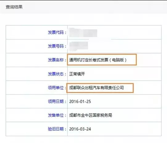输入发票代码和号码即可查询,查询结果如下:
